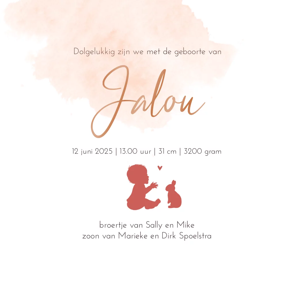 Super lief geboortekaartje van meisje met twee zusjes en broer met hartjes voor een derde kindje