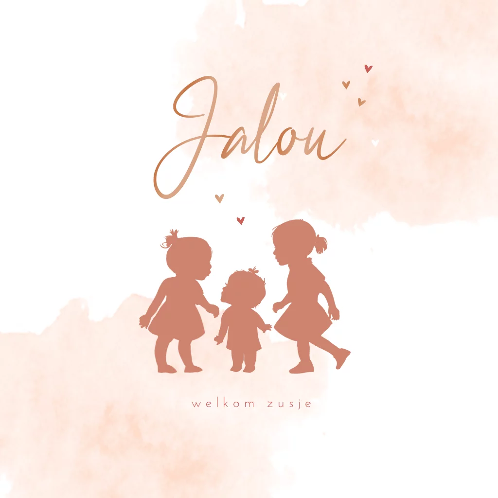 Super lief geboortekaartje van meisje met twee zusjes met hartjes voor een derde kindje