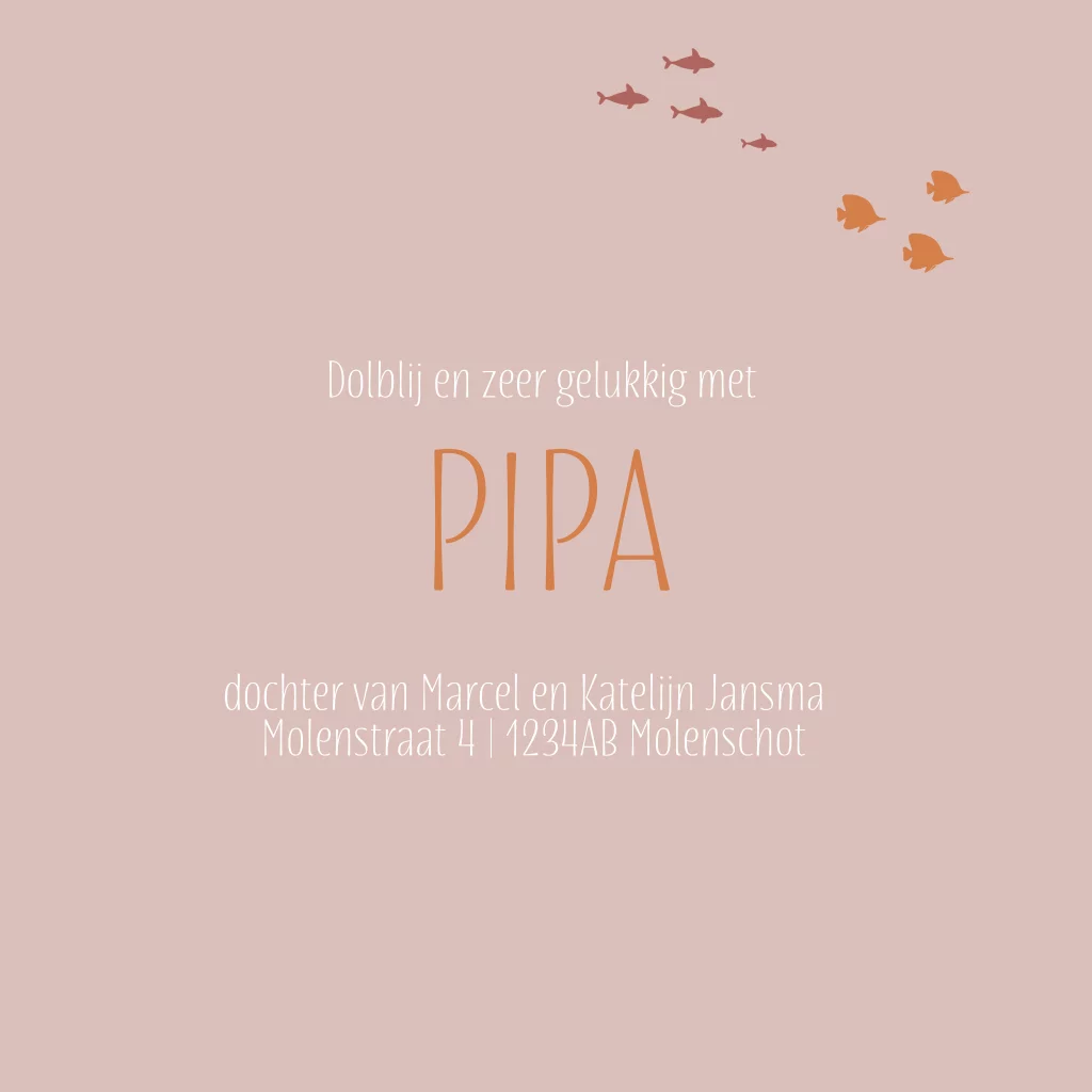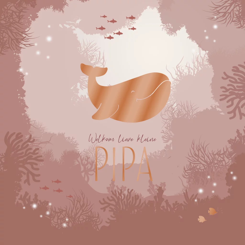Welkom in de betoverende waterwereld van het geboortekaartje meisje walvis waterworld sprookje. Dit prachtig getekende geboortekaartje neemt je mee op een reis door de onderwaterwereld, waar de vissen en walvis schitteren boven de diepe blauwe zee. De illustraties zijn liefdevol vormgegeven en bieden een luxe uitstraling aan dit unieke kaartje