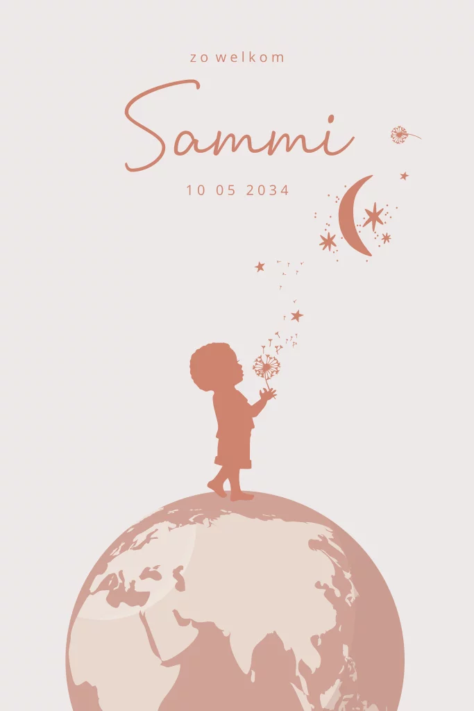 Voor een uniek en bijzonder geboortekaartje moet je bij ons zijn! Wij hebben dit schattige geboortekaartje van een wereldbol met sterren en maantje, perfect voor een klein meisje. De teksten zijn naar wens aanpasbaar.