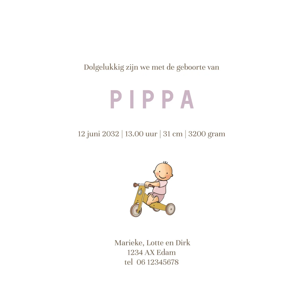 Welkom bij onze collectie geboortekaartjes! Dit prachtige geboortekaartje met een retro bus in lila, versierd met een schattige kinderwagen, is perfect voor de aankondiging van de geboorte van jullie kleine wonder. De illustratieve stijl en levendige kleuren geven een vrolijke en kleurrijke uitstraling aan dit unieke kaartje. Of je nu van auto's houdt, dit geboortekaartje zal zeker de aandacht trekken met zijn speelse ontwerp.