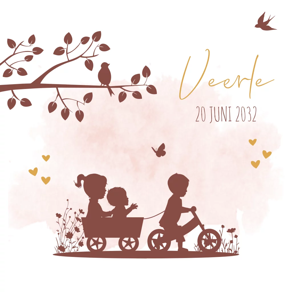 geboortekaartjes 3e broer zusje baby loopfiets baby meisje broer zusje