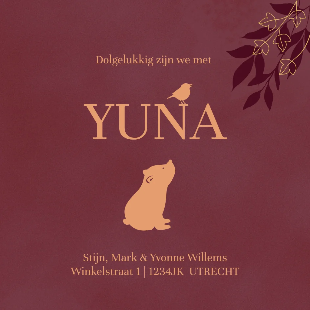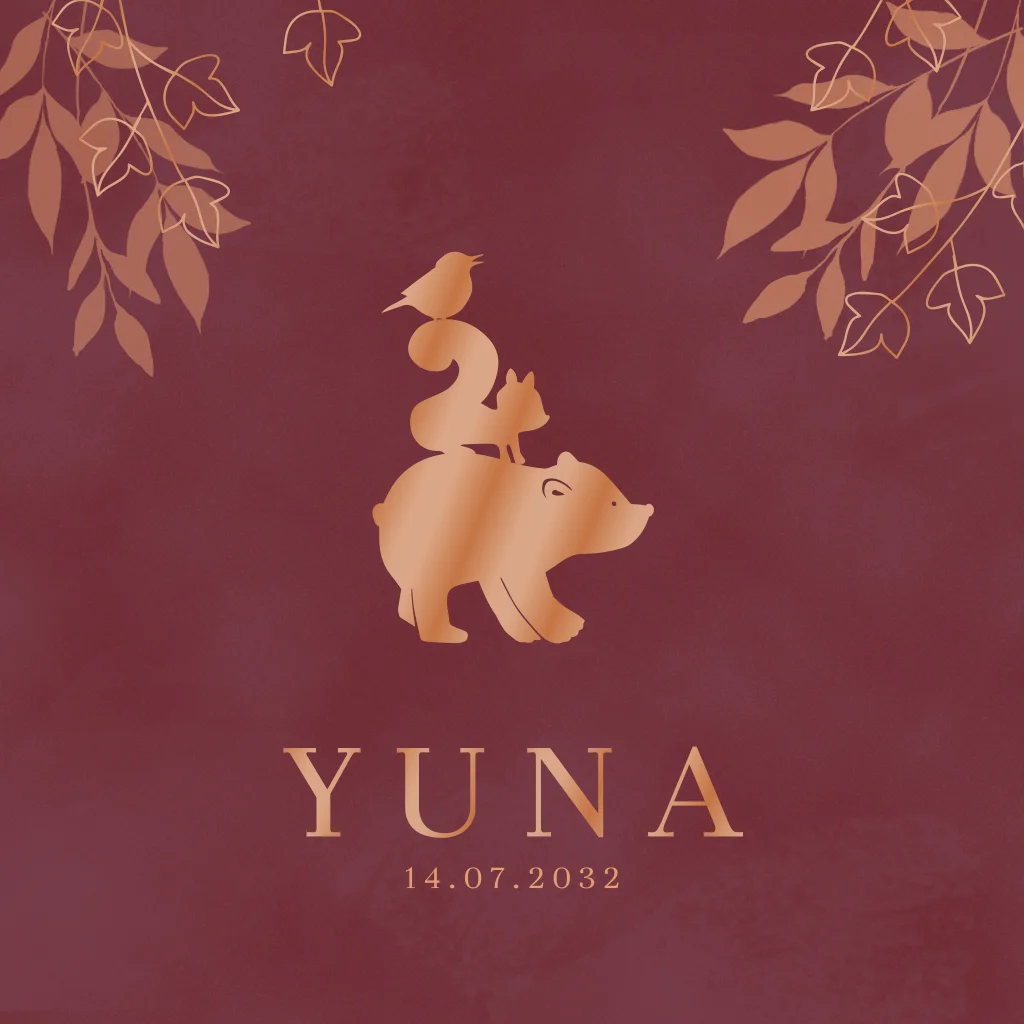 Geboortekaartje meisje ijsbeertje eekhoorn en vogel. Wat een lieve kaart voor een meisje. Je kunt de achtergrond aanpassen. In de clipart staan veel mooie tinten velvet kleuren. Veel plezier met het ontwerpen.