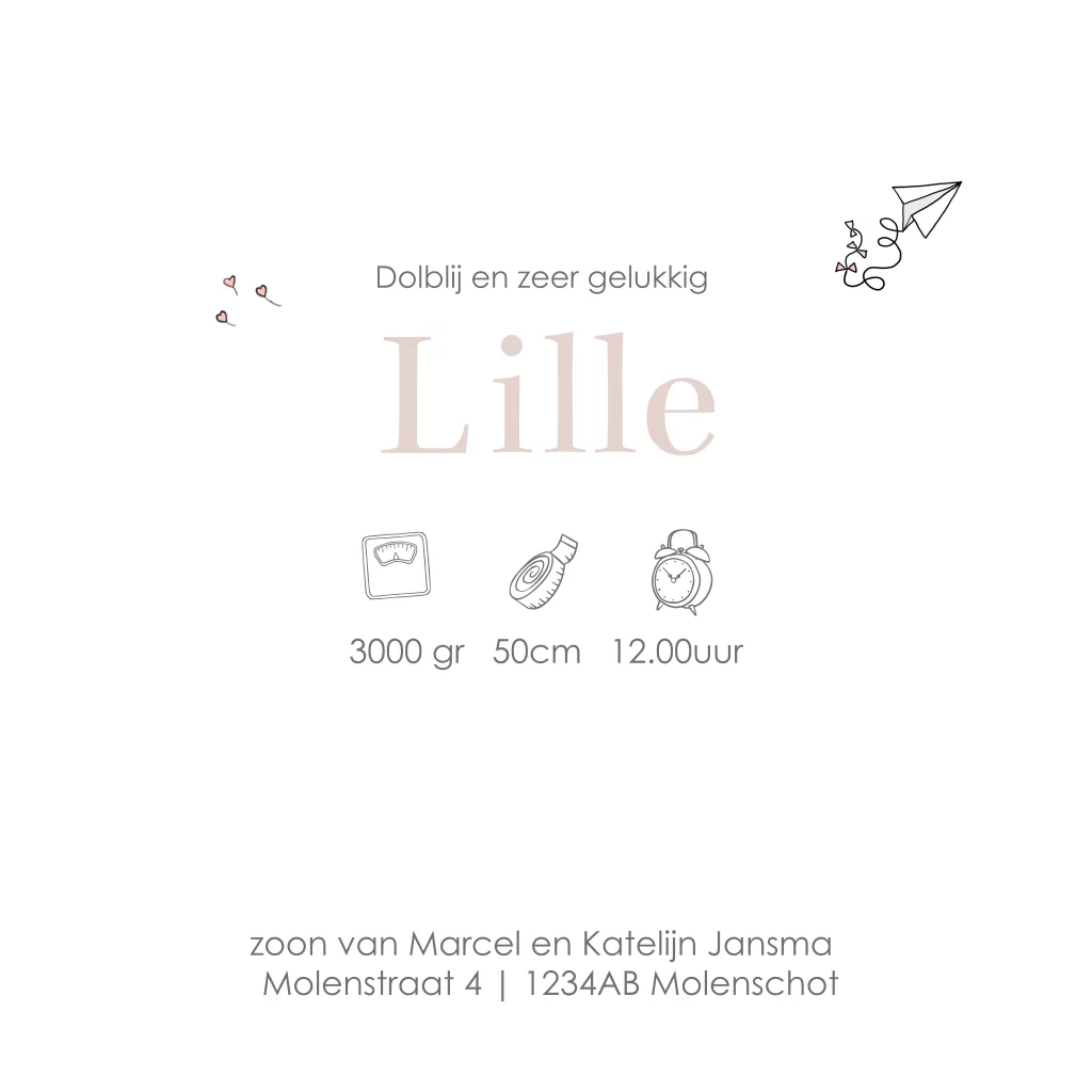geboortekaartjes meisje pentekening ouders baby meisje
