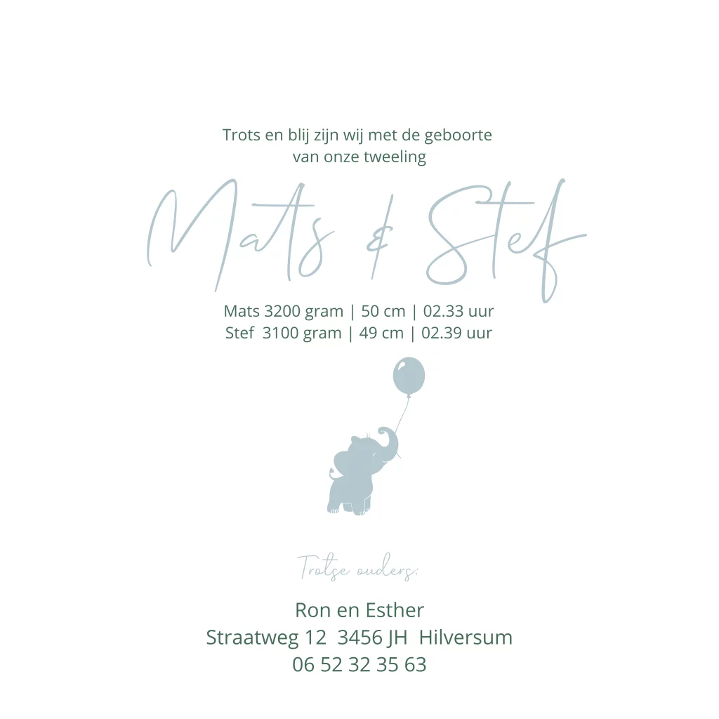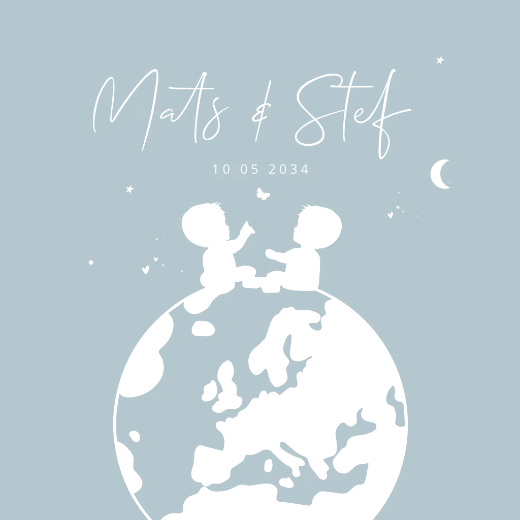 Welkom bij onze prachtige collectie geboortekaartjes! Ben je op zoek naar een uniek en liefdevol ontwerp voor de geboorte van jouw tweeling? Dan is ons geboortekaartje tweeling op wereldbol blauw precies wat je zoekt. Dit schattige kaartje straalt warmte en verbondenheid uit, met een prachtig geïllustreerde wereldbol in het midden in prachtige folie druk.