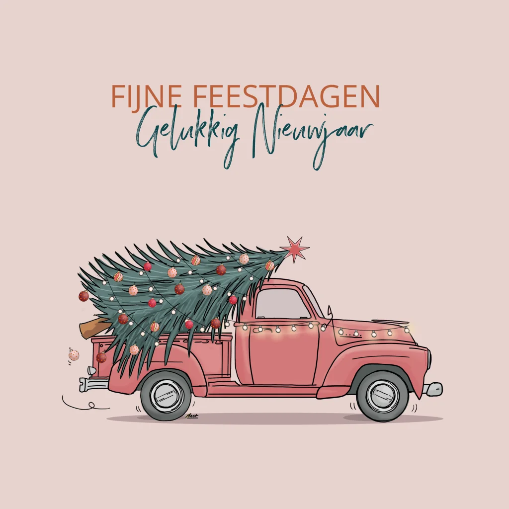 Kerstkaart Amerikaanse pickup met kerstboom
