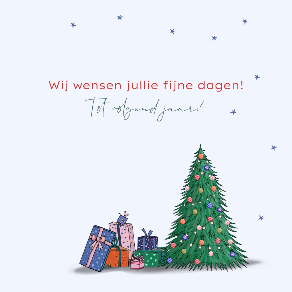 Grappige en leuke kerstkaart rode fiat 500 met kerstboom en pakjes