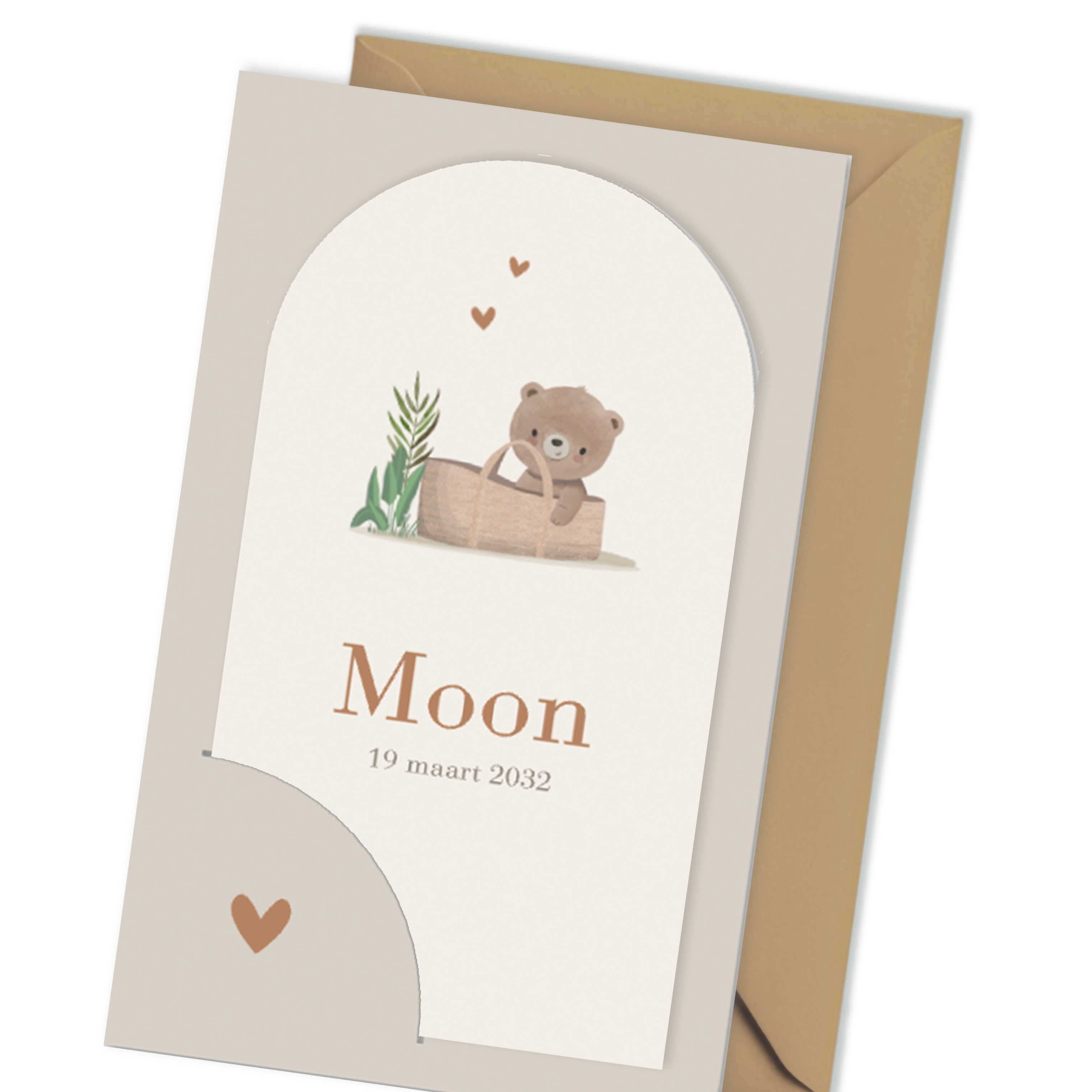 Op zoek naar een unieke labelkaart voor jullie geboortekaartje? De labelkaart met beertje in mandje met hartjes is een perfecte keuze om een originele touch toe te voegen aan jullie geboortekaart. Met een schattig beertje en hartjes op een beige achtergrond, straalt deze labelkaart liefde en schattigheid uit.