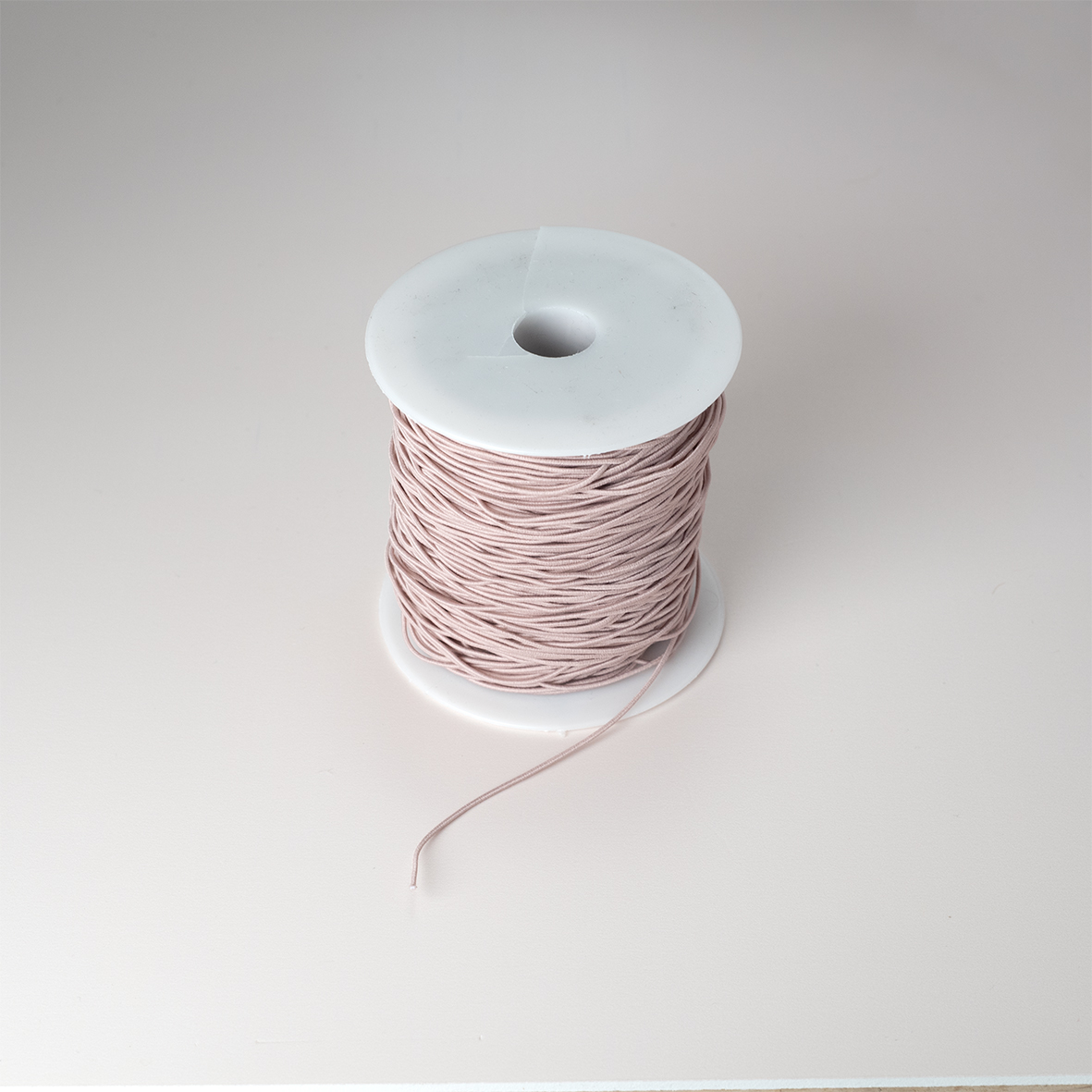 Oudroze elastisch koord (10 meter) van 1 mm dik. Geschikt om ca. 25 kaarten mee te versieren.