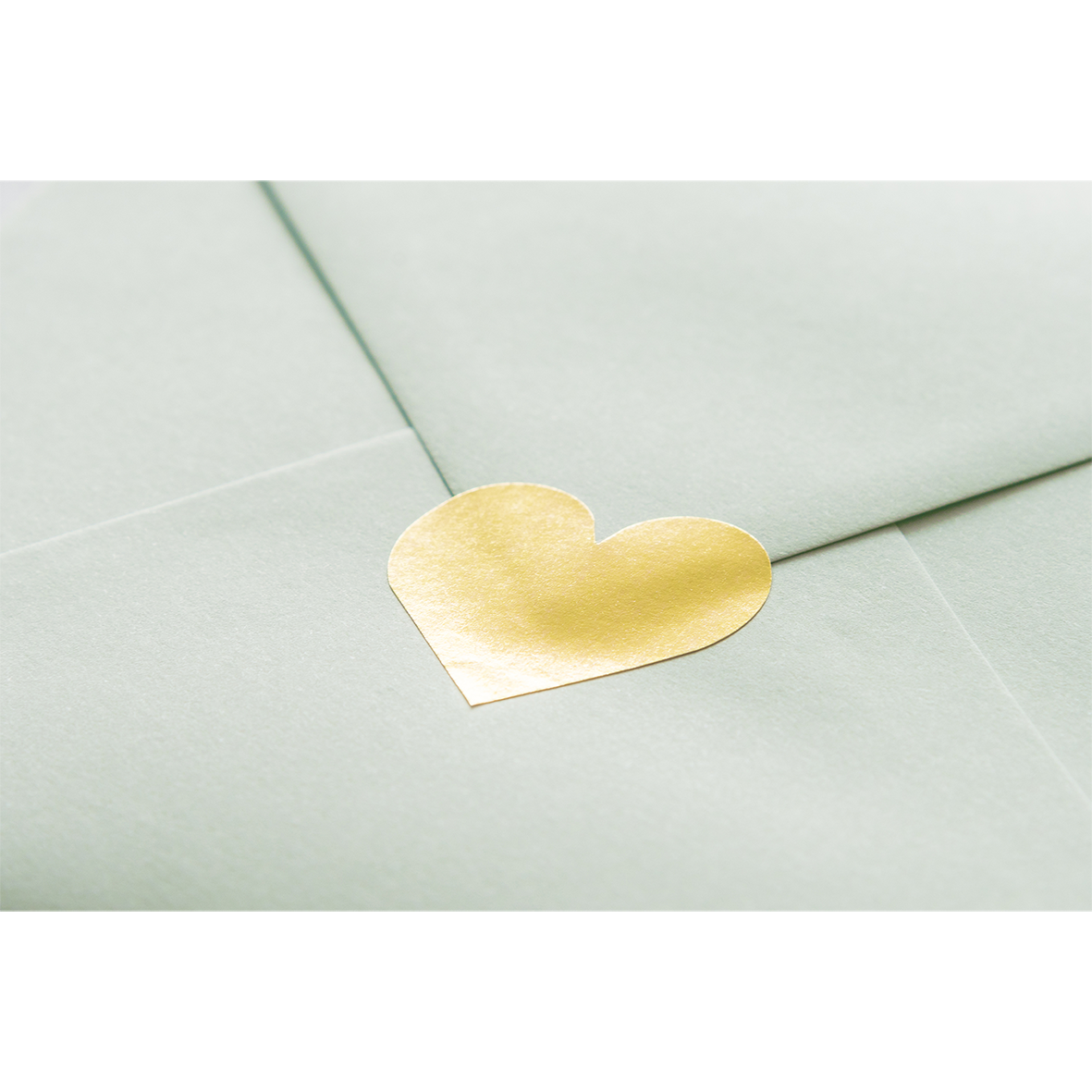 Sluitzegels in de vorm van een gouden hart. Het hartje maakt deze sluitzegel helemaal af.