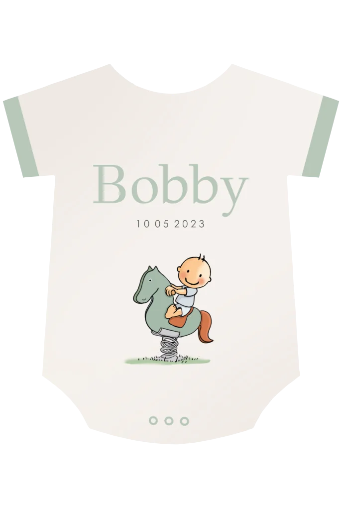 Geboortekaartje romper standaard wit, deze originele vorm kaart is geheel naar wens aanpasbaar.