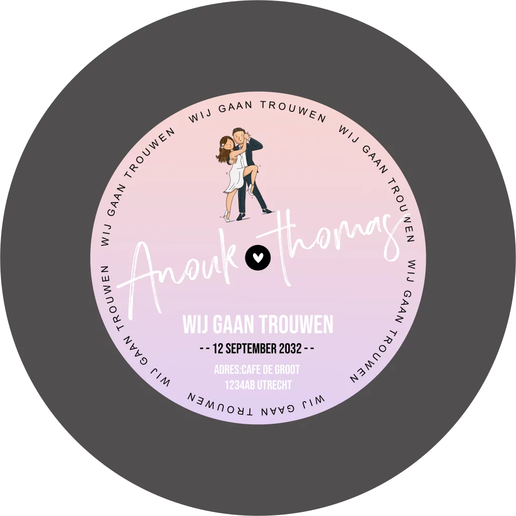 Ronde trouwkaart uitnodiging met teksten. Wat een feest om deze te krijgen.