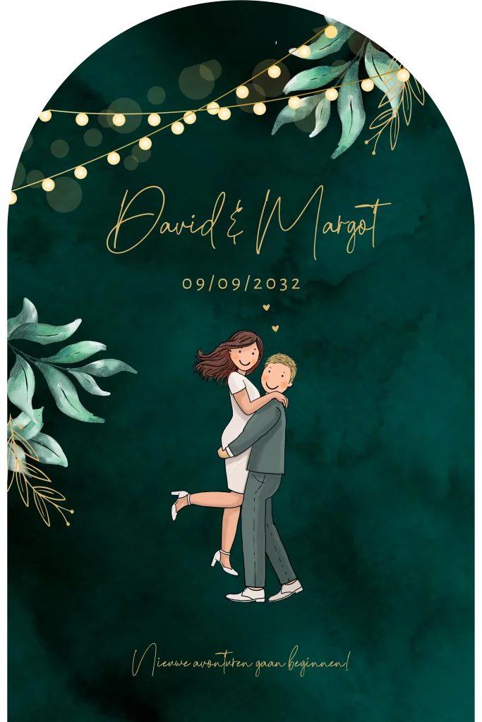 Trouwkaart bruidspaar donkergroene achtergrond