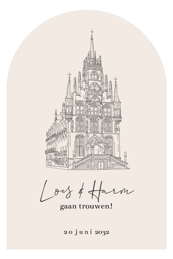 Trouwkaart stadhuis Gouda lijntekening