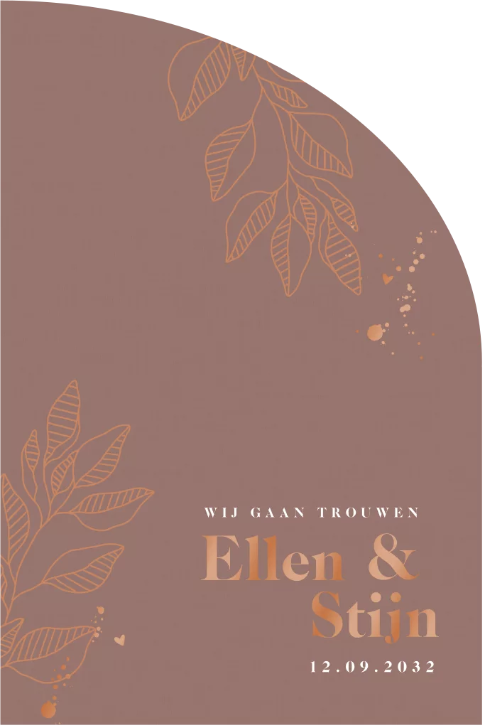 Als je op zoek bent naar iets unieks voor je trouwkaart, dan is deze prachtige trouwkaart met takjes en goudfolie zeker iets voor jou! Deze kaart is perfect voor een botanische of natuurlijke bruiloft. De prachtige basis maakt het design rustig en stijlvol, terwijl de rosegouden foliedetails het geheel een luxe uitstraling geven.