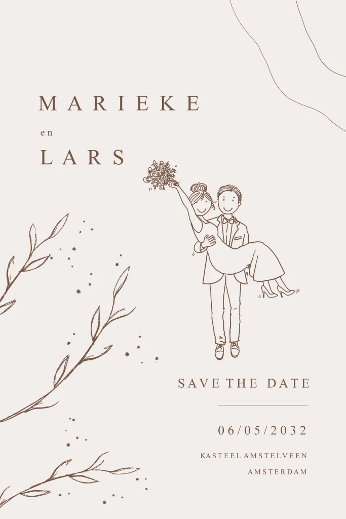 Save the date kaart takjes en teksten met mooie vormgeving. Op zoek naar een unieke en stijlvolle manier om je gasten je bruiloft te laten weten? Kies dan voor een Save the Date kaart met takjes en teksten! Deze kaart is perfect voor bruiloft in elk seizoen en zal zeker indruk maken op je gasten.