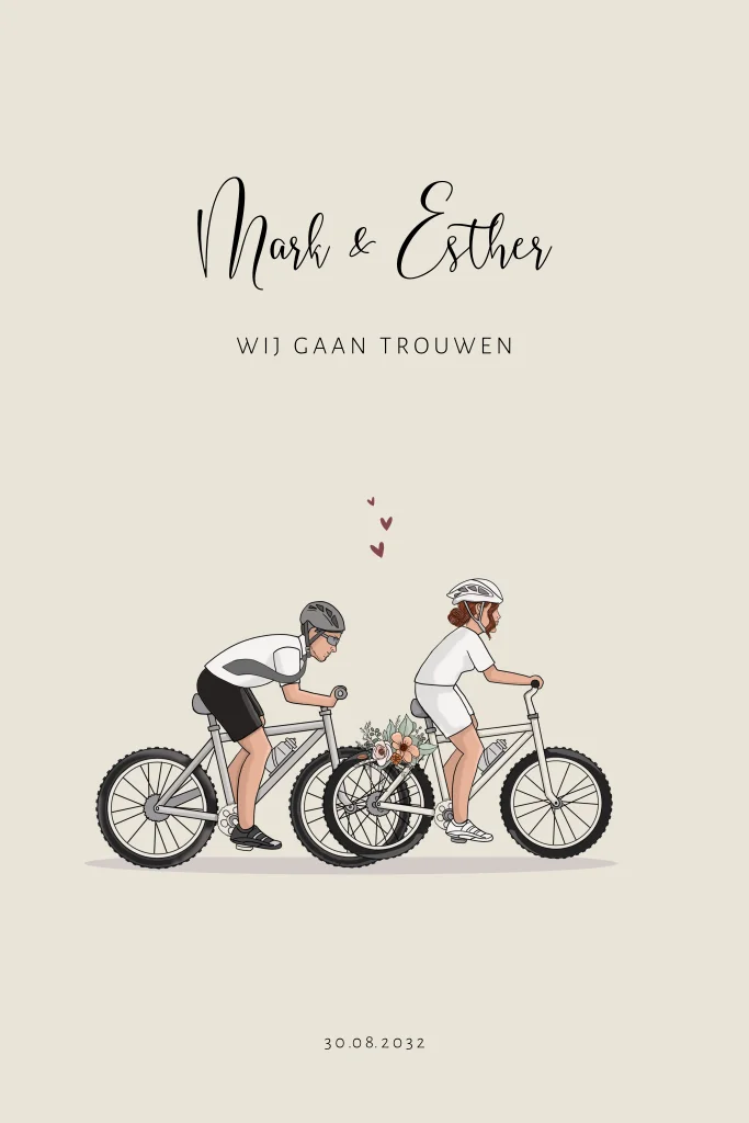 Trouwkaart enkel mountainbikers in trouwkleding