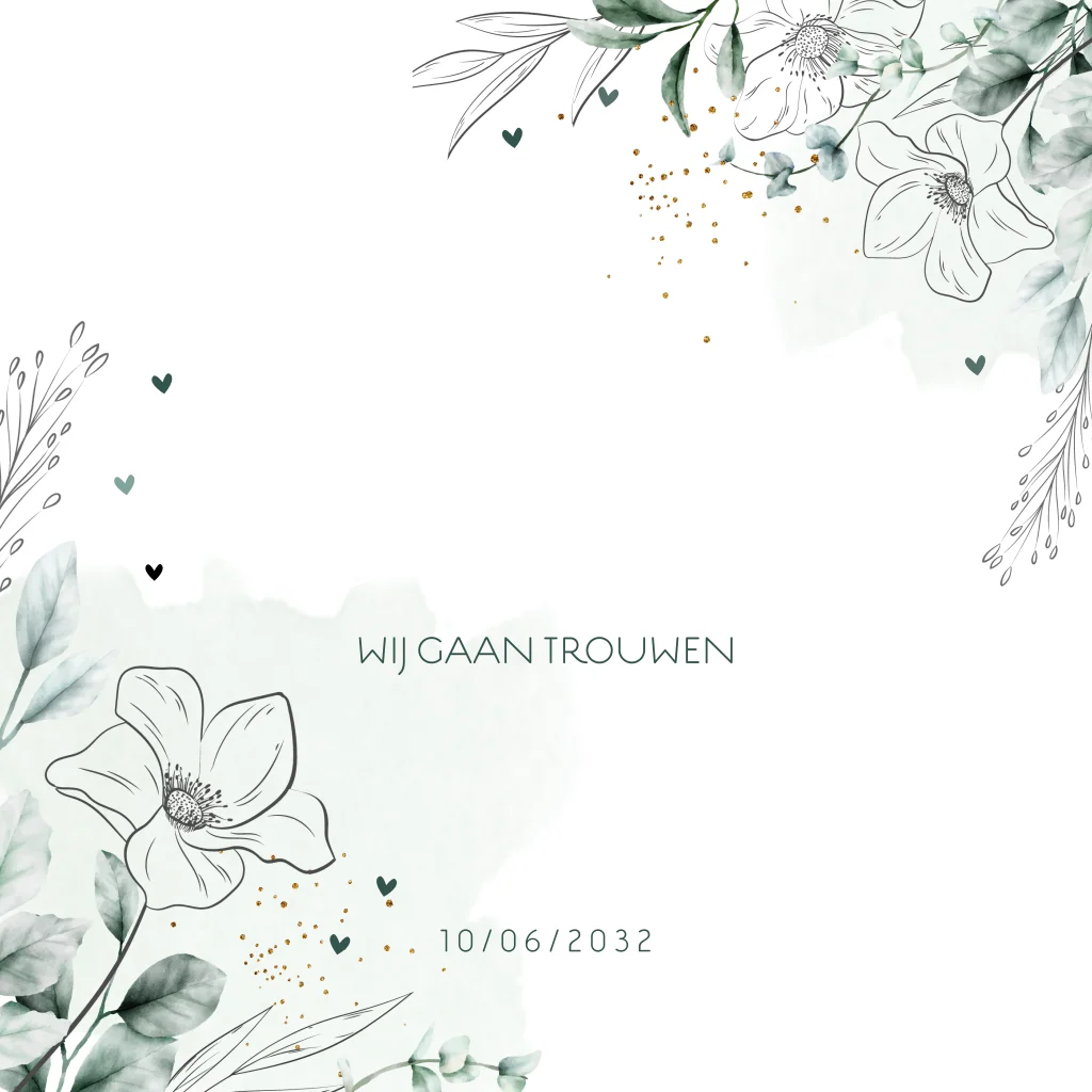 Trouwkaart takjes met lijnbloemen: een unieke en stijlvolle manier om je bruiloft aan te kondigen! Deze kaart is ontworpen met een aquarelbloem motief in zachte kleuren, perfect voor een rustieke of botanische bruiloft. De kaart is voorzien van ruimte voor alle belangrijke details van je bruiloft, zodat je gasten alles in één oogopslag kunnen zien.