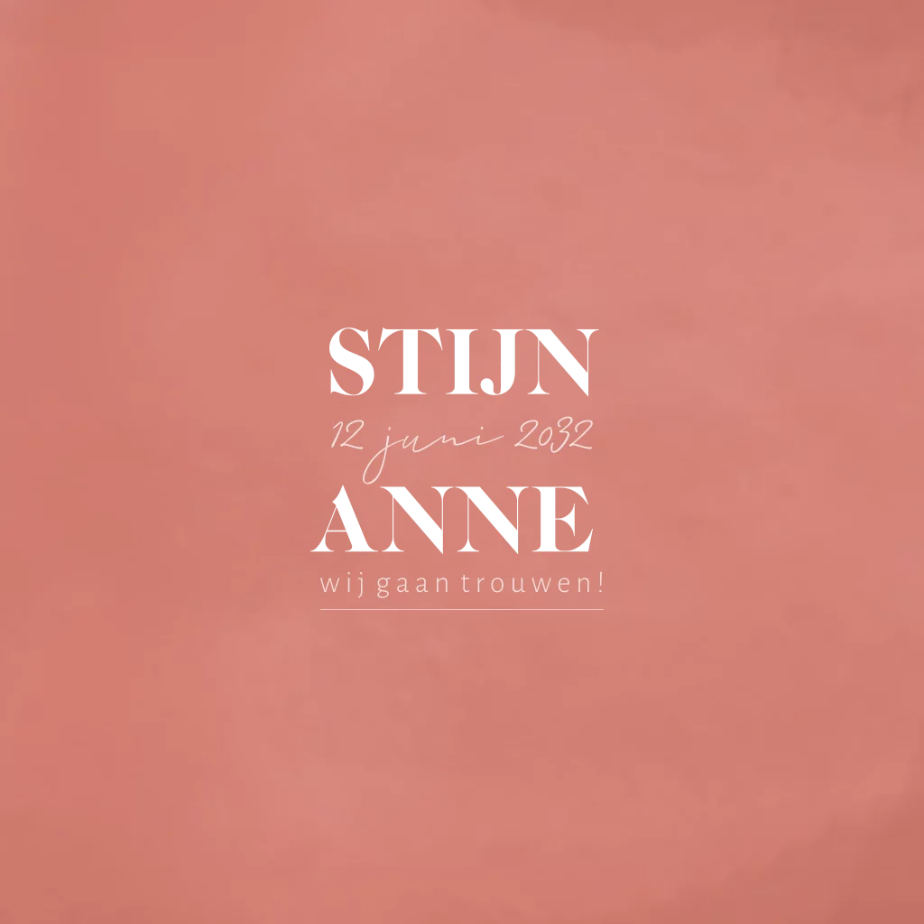 Trouwkaart velvet terracotta met strakke tekst