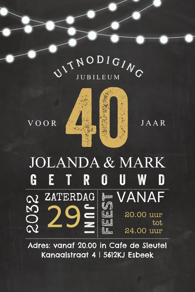 Jubileumkaart krijtbord met goudlook teksten