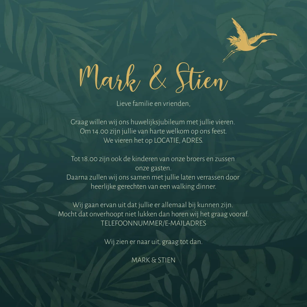 Uitnodiging jubileum prachtige takjes en bladeren goudfolie