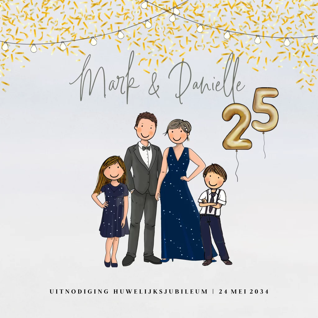 Uitnodiging jubileum bruidspaar met kinderen in gala