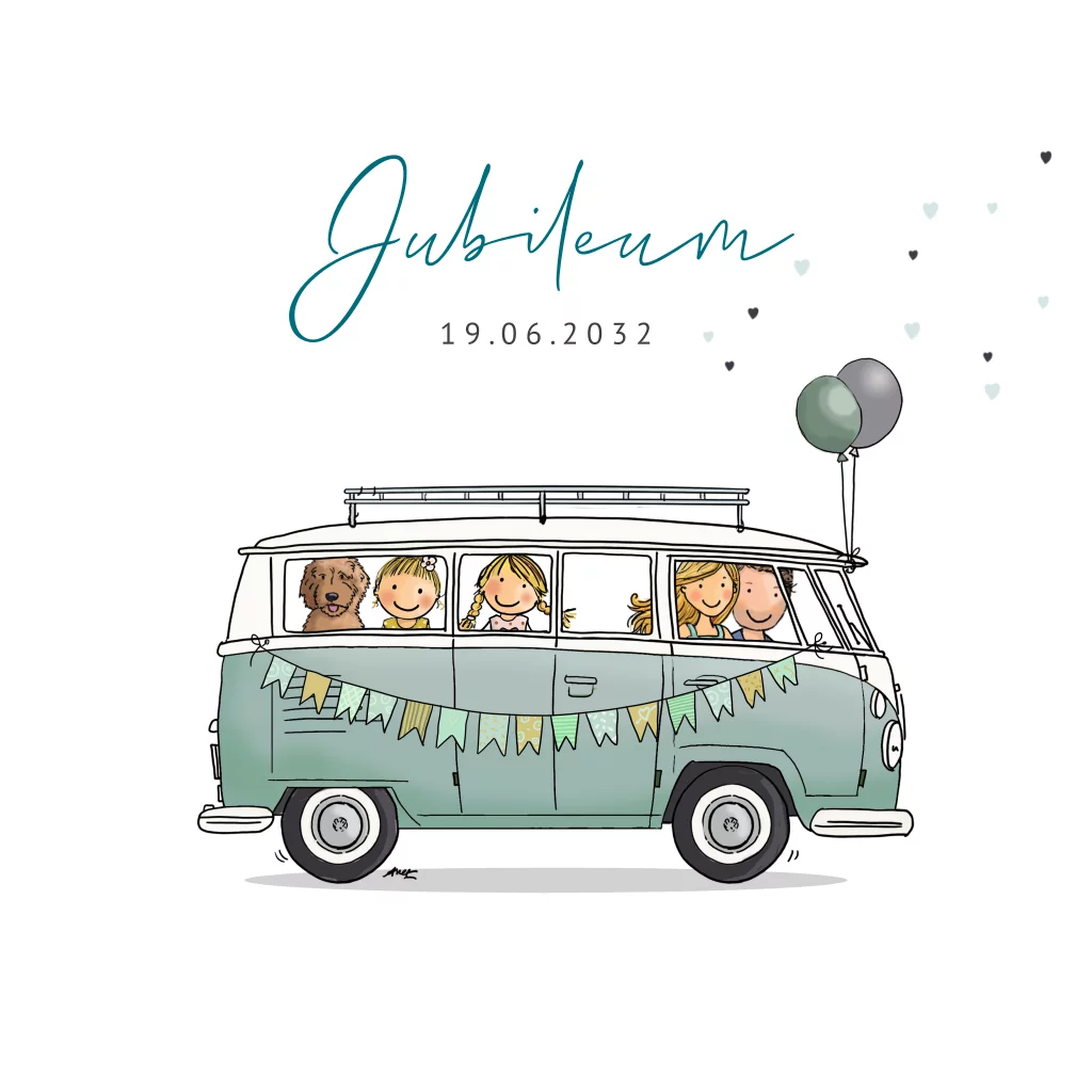 Uitnodiging jubileumkaart vwbusje met familie, deze kaart is naar wens aanpasbaar