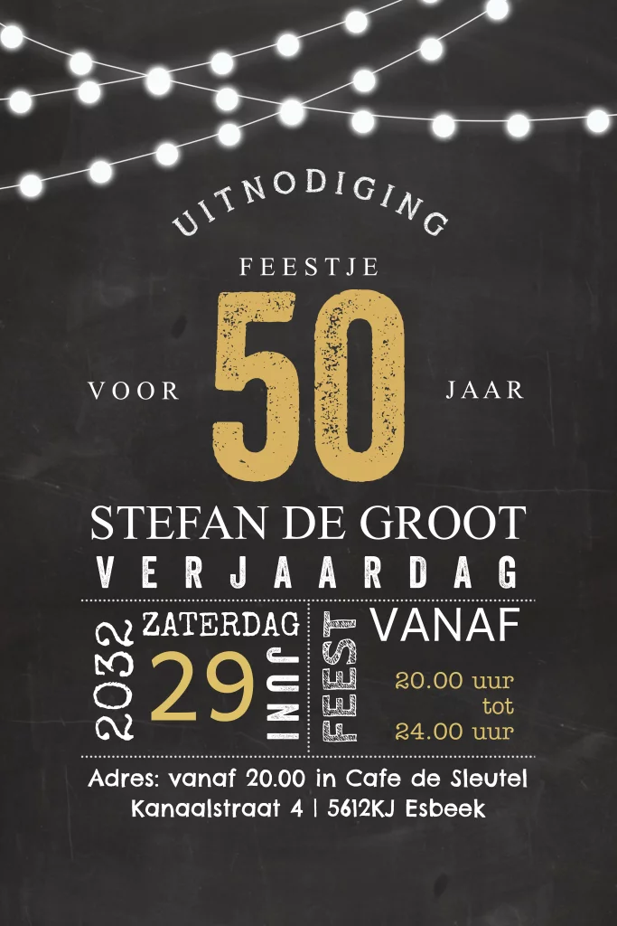 Uitnodiging lampjes op donkere achtergond met goudlook