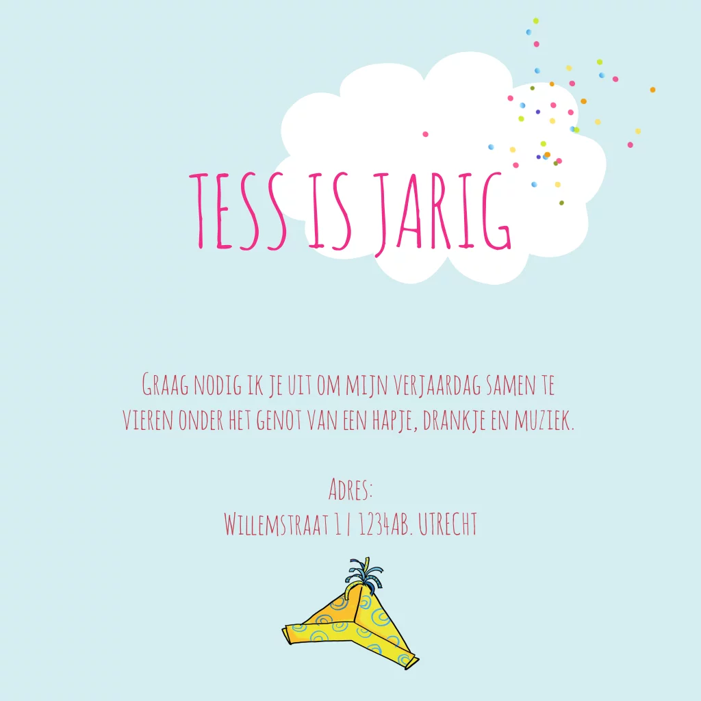 Uitnodiging Fien hangt aan ballonnen en Teun kijkt toe. Super grappig en vrolijk om te krijgen. Deze uitnodiging is perfect voor een kinderfeestje of verjaardagskaart. Fien en Teun zijn twee vrolijke kinderen die samen een leuk feestje vieren. De uitnodiging is op een kleurrijke manier ontworpen en zal zeker een glimlach op het gezicht van de ontvanger toveren.