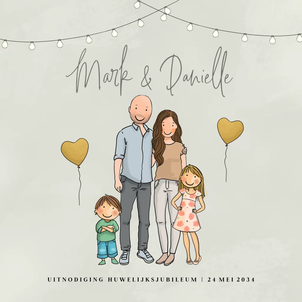 Uitnodiging jubileum bruidspaar met kinderen, origineel en leuk! Wil je eventueel andere haarkleur, mail ons dan!