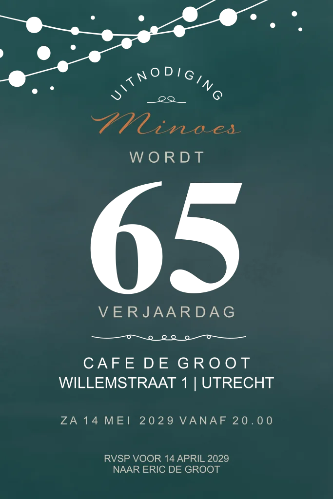 Wilt u een unieke uitnodiging voor uw verjaardag maken? Kies dan voor deze mooie koperfolie uitnodiging met prikkabel. Het design is modern en stijlvol, en het koperfolie geeft de kaart een luxueuze uitstraling. U kunt de kaart personaliseren met uw eigen foto's en tekst, en er is ook plaats voor een gepersonaliseerd nummer.